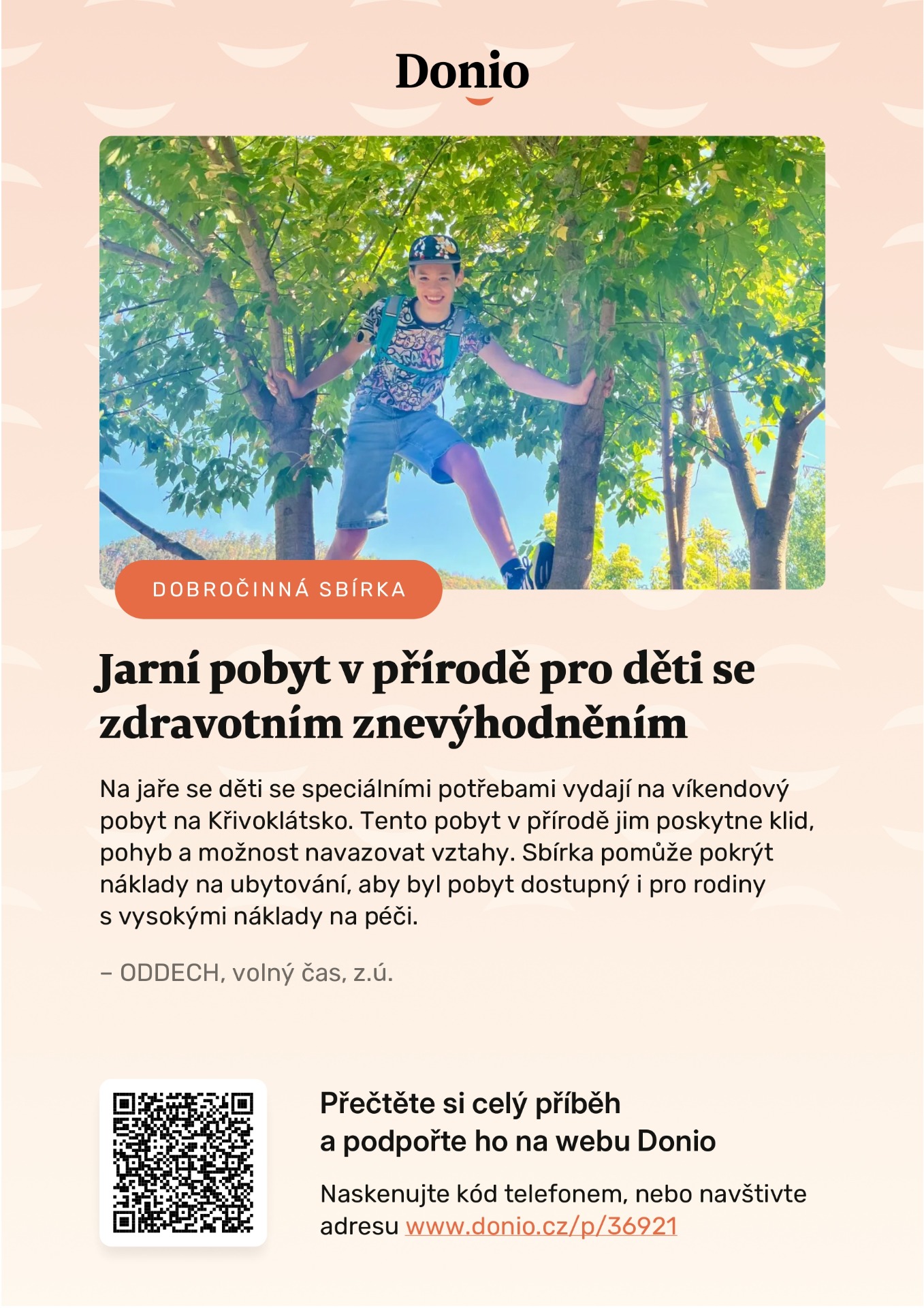 Proto pořádáme sbírku na náš jarní pobyt v přírodě na Křivoklátsku, abychom rodinám ulehčili. Péče o tyto děti je pro ně v mnohém spojena s vysokými náklady.